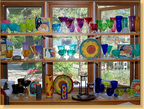 Prentice Hicks creates hand-blown glassware in a rainbow of colors and useful sizes. Beautifully decorated ceramics by Louise Hopson can brighten a new living space. Turtle Island hand woven rugs complement every color scheme. Al Rollings' driftwood carvings of birds are a thoughtful gift for the bridegroom who treasures the outdoors.